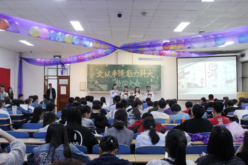 为深入开展“书香校园”读书节活动,更好地传承中华传统文化,丰富课余文化活动,培养学生高尚的情操,展现大学生的时代风采,加深大学生对传统文化的认识,提高大学生的文学素养,5月16日,矿业学院在主楼ES0206举办了以“文以争锋、魅力OD在线”为主题的诗词朗诵大会。