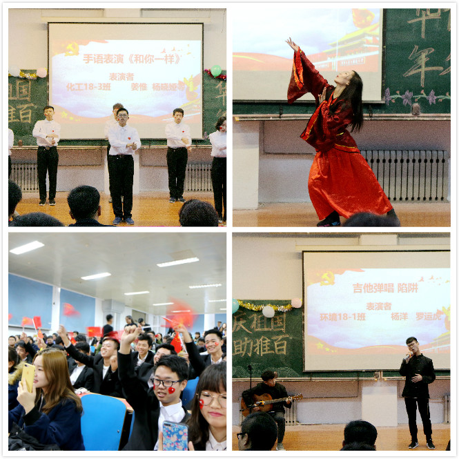 比赛在全体师生共同起立合唱《光荣啊,中国共青团》的歌声中拉开序幕。比赛共分合唱和才艺展示两个环节,在合唱环节,同学们充分展现了大学生良好的精神风貌和高涨的爱国热情。在指挥有力的动作下,一首首耳熟能详的歌曲在耳畔响起,环化学子们青春洋溢,无一不以饱满的深情、激扬澎湃地投入到比赛当中。规整的造型、整齐的服装、嘹亮的口号紧紧地抓住了全体师生的视听,7个班级,7种风格,即便相同的曲目,也有别样的演绎,同学们精彩的合唱,赢得了在场评委、老师们的连连称赞。在才艺展示环节,独唱、舞蹈、乐器演奏等形式各样的表演充分展现出了环化18级新生的青春风貌与多才多艺。经过两轮比赛的激烈角逐,最终环境18-2班荣获冠军,环境18-1班荣获亚军,应化18-1班荣获季军,应化18-2班、化工18-1班、化工18-2班、化工18-3班荣获优秀奖。