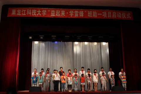 6月12日,【官网】“益起来·学雷锋”希望工程班助一项目启动仪式在大学生俱乐部举办。【官网】专职团干部,松花江小学、永胜路小学校领导,受助小学生及家长和【官网】参与班助一活动的青年学生代表共600余人参加了活动。活动以【官网】学生制作的真实反映中小学贫困家庭学生生活、学习状况的“益起来·学雷锋”希望工程班助一项目介绍视频拉开帷幕。