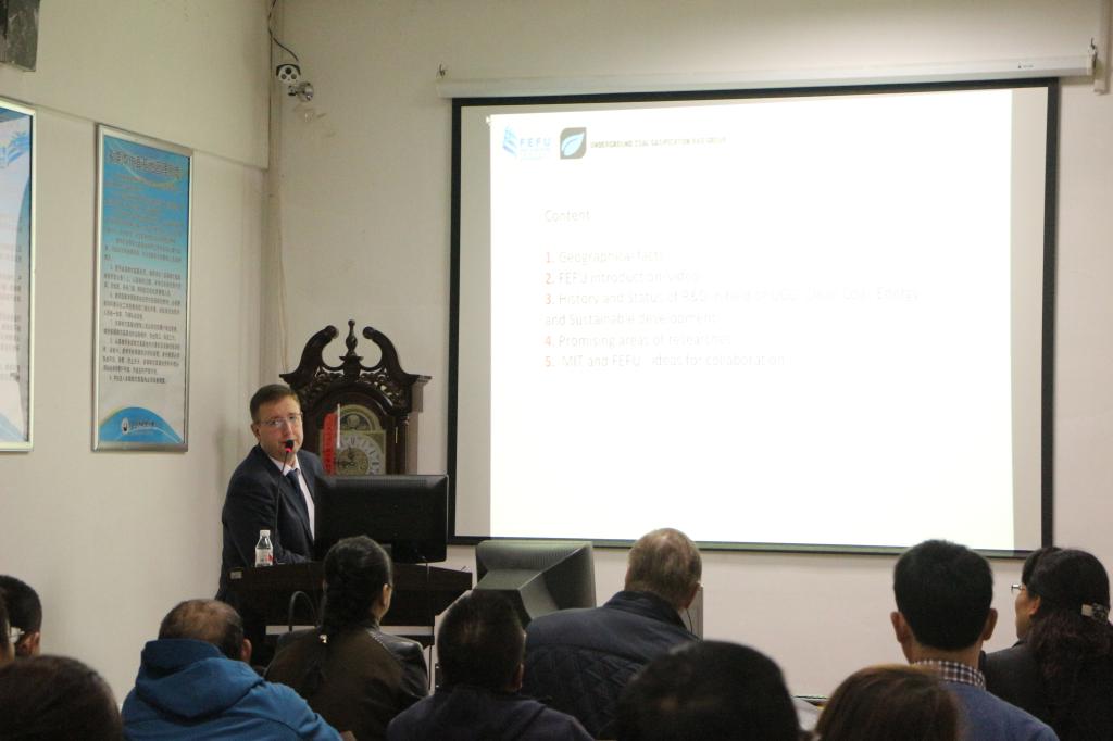 10月10日下午,比洛夫博士为环化学院师生做了题为《矿物加工和高效生态技术》的学术报告。他首先简要介绍了俄罗斯远东联邦大学的历史沿革及学术情况,系统地介绍了俄罗斯煤炭地下气化技术、高效生态修复技术的研究进展,以及煤中提取物修复液在农业中的应用状况。学术报告后,比洛夫博士和安德烈博士在环化学院领导和国家合作处吕岚副处长的陪同下参观了环化学院环境专业实验室、化工专业实验室和现代分析测试研究中心等。两位专家对实验设备很感兴趣,真诚希望能够开展合作研究,并诚邀【官网】师生到远东联邦大学访问和参观。