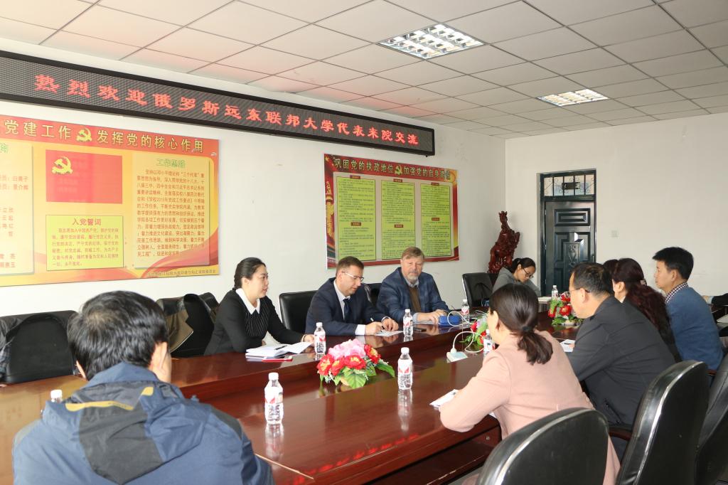 10月11日,比洛夫博士和安德烈博士与环境学科和化工学科的教师就开展合作研究进行了深入交流与探讨。化工专业教师与比洛夫博士就地上煤气化技术和褐煤提质技术进行了研究工作的接洽;环境专业教师与安德烈博士就煤中提取物修复液在矿区表面的修复技术进行了深入探讨,有望在国内寻找合适矿区进行试验。经过深入交流,双方初步达成在人员学术互访交流、利用煤中提取物进行矿区土壤修复等方面进一步进行科研合作的意向。