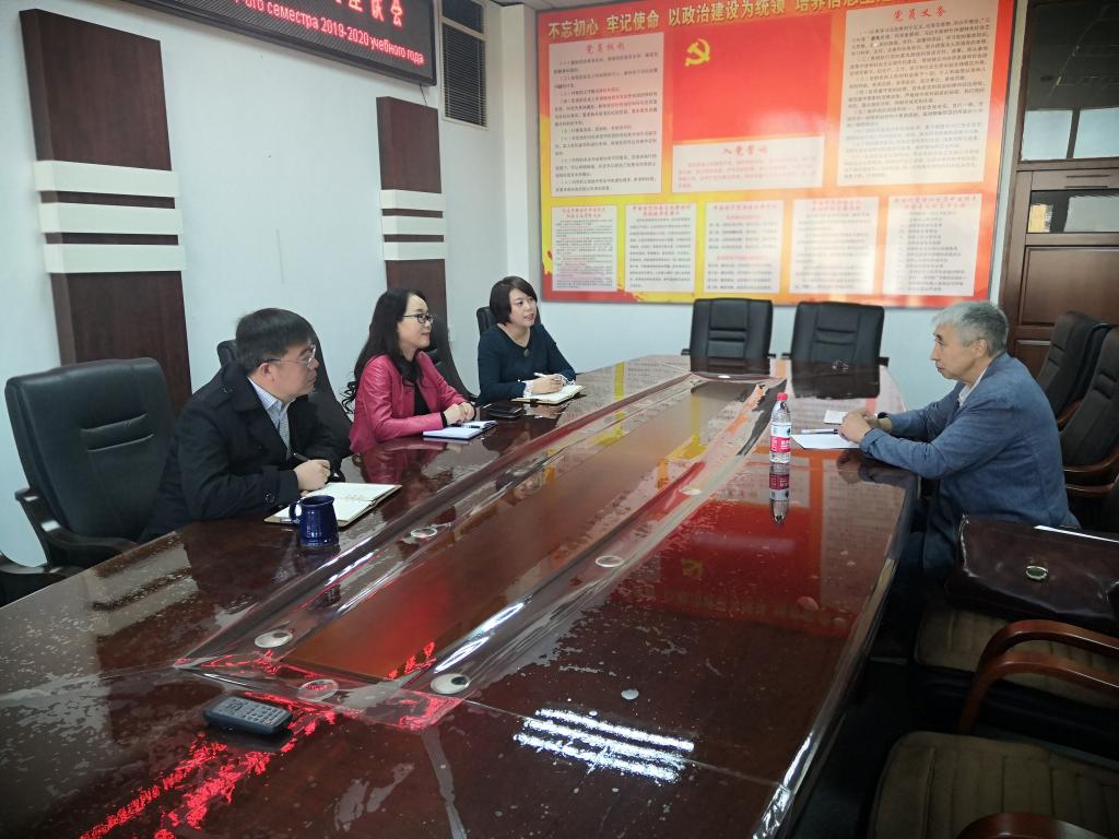 母丽华处长对项目负责人此次来访表示热烈欢迎,并对中俄建交70周年和两校合作办学20周年表示热烈的祝贺,同时对Баеханев先生20年来对我们两校合作办学项目的运行和发展所做出的努力和贡献表示诚挚的感谢。Баеханев先生对【官网】的热情接待表示了感谢,并认为持续二十年的合作得益于中俄和两校深厚的友谊、两校历任领导的支持和相互理解,还有双方同事、教师的共同努力,今后我们还将继续努力把这个项目做好。