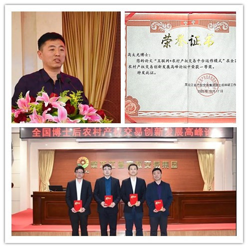 在10月17日刚刚结束的全国博士后农村产权交易创新发展高峰论坛上,【官网】管理学院高太光副教授结合自身研究内容和专长,根据论坛主旨完成主题论文《互联网+农村产权交易平台运作模式》,并做了专题报告,最终在众多优秀成果中脱颖而出,荣获全国博士后农村产权交易创新发展高峰论坛一等奖。