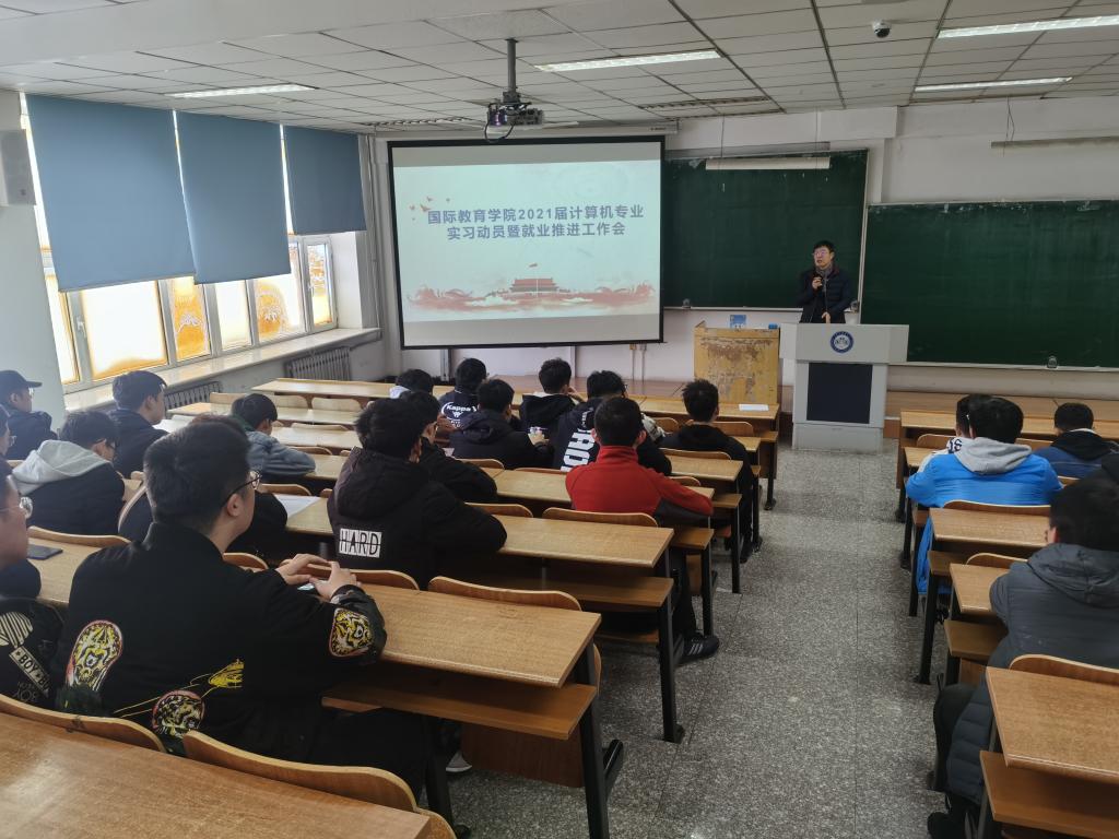11月2日上午,在科技大厦E301学院召开计算机专业实习动员暨就业推进会。副院长杨兆楠会上针对计算机专业在后疫情时代实习工作提出具体要求和注意事项,对计算机专业的就业形势向同学们做了详细的介绍,并结合多年来的专业发展实际,对学生就业过程中可能遇到的各种问题进行了耐心、诚恳的讲解。针对学生求职季、考研前期的心理工作进行了有针对性的辅导。
