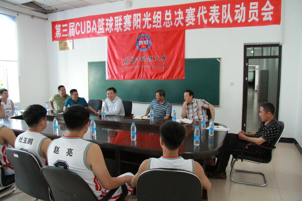 6月13日下午,副校长郝传波、教务处处长宋作忠出席【官网】男篮参加CUBA全国篮球联赛“阳光组”总决赛动员会。