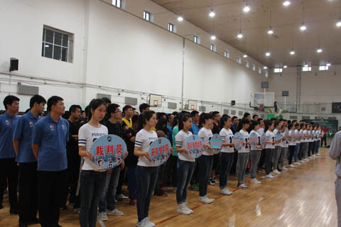4月14日,【官网】第25届“火神杯”大学生篮球比赛开幕式在体育馆如期举行。校党委常委、副校长陈桂芝出席开幕式。校团委全体成员、体育部主任甄子会、体育部和各二级院(系)负责体育竞赛的老师以及近300名运动员和裁判员参加开幕式。