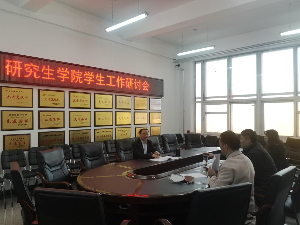12月7日,研究生学院在科高1010会议室召开学生工作研讨会。本次会议以“保安全、保稳定、上台阶、上水平”为主题,研究生学院党委书记王维杰参加并主持会议,学院学工办主任侯树成、院团委书记郝鑫、辅导员刘思锐参加会议。