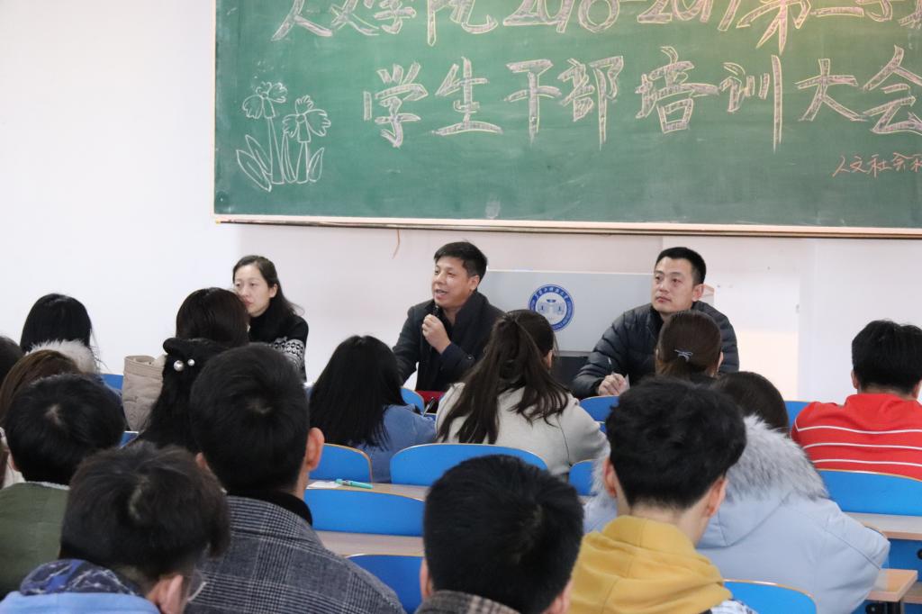 3月2日上午,人文学院召开学生干部培训会。会上,辅导员张利南部署了开学初各项学生工作。其次,副处级辅导员王伟强做了主题为“做有思想 有担当 有学识 做表率的新时代学生干部”的培训。最后,党委书记陈连军围绕“如何做一名合格的学生干部”从发挥好四个作用、提升服务学生、具备四种成长三个维度进行阐释会后,陈书记带领全体学生干部在主楼阳光大厅参观《OD在线庆祝改革开放四十周年回顾展》。(张利南/文)