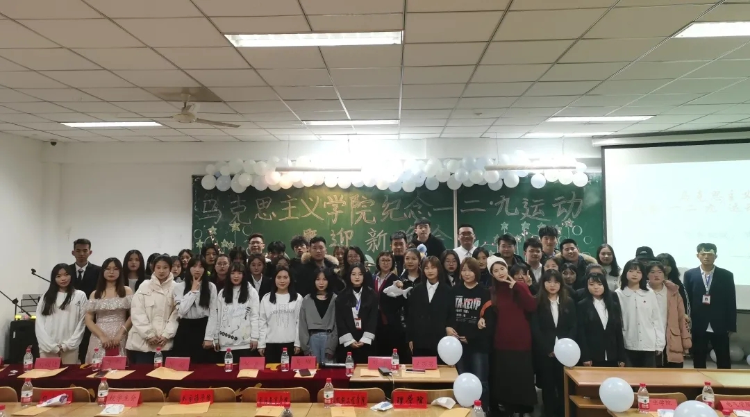 为了迎接2020级新生,纪念“一二·九”学生运动,激励学院学生爱国热情,心寄鸿鹄之志,培养高尚情操,马克思主义学院于12月5日晚在科厦S209举行了“一二·九运动暨2020级迎新晚会”。学院党总支部书记张影、辅导员高阳、2020级班主任张庆、刘明达以及各二级院系学生会文艺部负责人和学院2019级、2020级全体学生参加了活动。