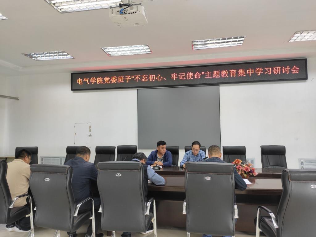 按照学校党委要求,结合电气学院主题教育工作安排,电气学院党委领导班子利用18日、20日、23日、24日、25日五天的时间通过集中学习会、读书班等形式认真研读了《习近平关于“不忘初心、牢记使命”重要论述选编》、《深入学习习近平关于教育的重要论述》等学习材料。在深入学习的基础上,学院党委班子于26日下午和晚上,在学院楼五楼会议室组织召开两次“不忘初心、牢记使命”主题教育集中研讨会,学校主题教育第二指导组副组长张宝成出席指导研讨会,会议由院党委书记王凤林主持。