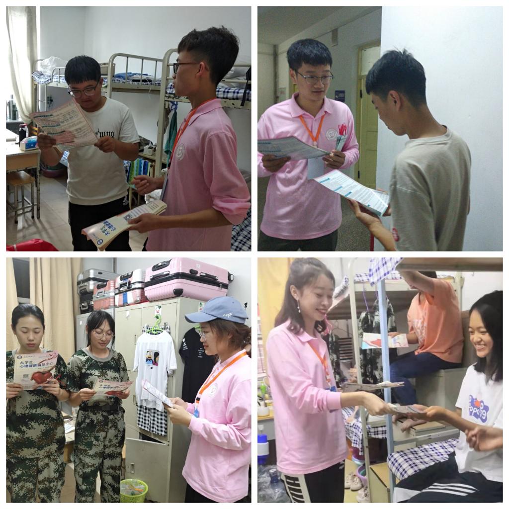 9月9日—10日晚,大学生心理委员联合会成员深入新生寝室,向新生赠送由心理健康辅导中心精心编制的以心理调适为主要内容的宣传单以及书签,并介绍了【官网】心理中心的主要工作内容以及大学生心理委员联合会的组织架构和工作职责,同时对于新生提出的适应问题,积极答疑解惑、传授经验,促进新生更好更快的适应大学生活。