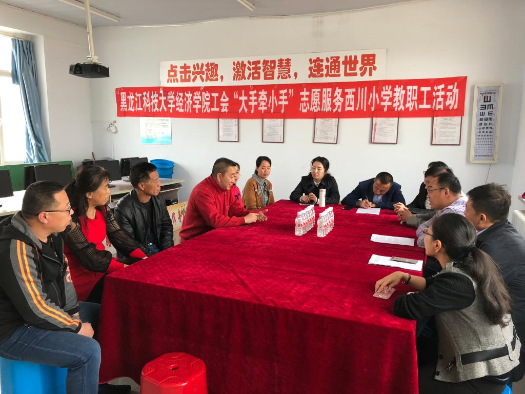 经过近一个月的沟通协调,5月10日下午,学院工会主席贺龙军带领7名具有博士学历的高职称教师驱车2个多小时前往西川小学进行慰问,并启动“大手牵小手”志愿服务活动。