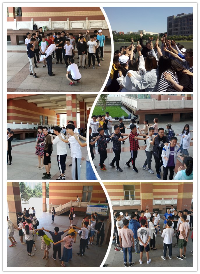 5月31日,心理健康辅导中心在小足球场、科技广场为【官网】140余名勤工助学学生开展了以“自信阳光训练营,勤工助学伴我行”为主题的团体心理训练活动。活动中,心理辅导中心针对勤工助学学生特点,设计了完整的团体心理训练实施方案。辅导老师带领同学们完成了“进化论”、“蜈蚣翻身”、“万里长城永不倒”、“有爱大声说”等心理游戏,并引导同学们在每一个游戏环节结束后进行了分享。同学们在热烈的气氛中,通过观察、参与、体验、分享,不仅放松了身心,体会了团队成员积极互动的魅力,更深刻体验到了主动交往、团队合作、勇敢表达的快乐。活动由心理中心主任任燕、心理健康教师孔庆娜、辅导员徐海英、周惠玉、刘睿共同带领,学生处副处长张元洪参加了本次活动。