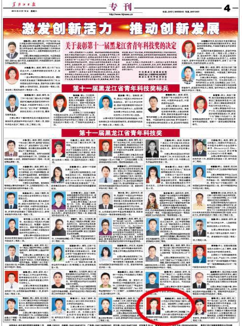 据了解,为深入贯彻党的十八大精神,推动实施创新驱动发展战略,坚定不移走科教兴省和人才强省之路,充分激发青年科技工作者的创造热情和创新活力,表彰我省优秀青年科技工作者在“八大经济区”和“十大重点产业”中做出的突出贡献,经黑龙江省青年科技奖评审委员会评审、黑龙江省青年科技奖领导工作委员会审定,省委组织部、省人力资源和社会保障厅、省科协决定,授予程俊廷教授在内的41名同志“第十一届黑龙江省青年科技奖”称号;另授予其他9名同志“第十一届黑龙江省青年科技奖标兵”称号。