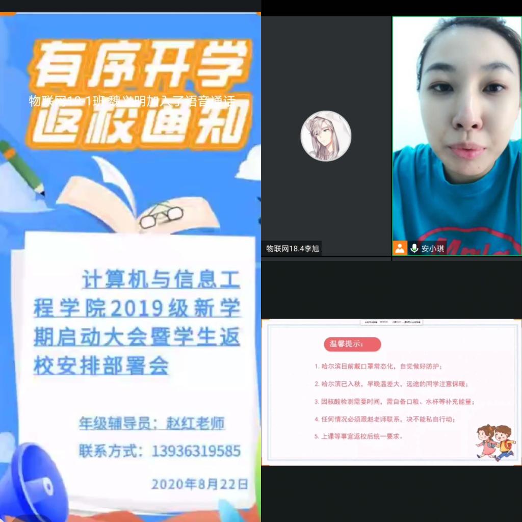 思想引导,年级大会解疑难。按照学校下发的《OD在线2020年秋季学生返校报到安排》,学院各年级分别在腾讯会议、钉钉会议等平台召开线上年级大会与学生干部大会。会上,辅导员老师向同学们进一步传达了关于返校复课的相关要求,针对何时返校、途中注意事项、核酸检测以及返校后相关安排,耐心细致地进行解答。