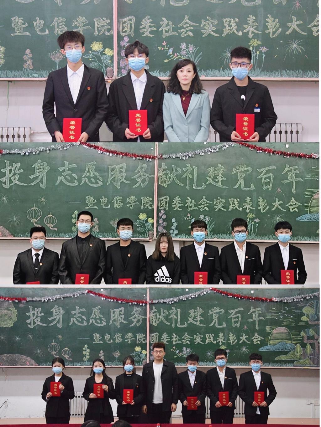 学院团委副书记孟凡贺对电信学院2020-2021学年第一学期寒假文化科技卫生“三下乡”社会实践开展情况进行了总结;学院团委副书记炼婕宣读了《共青团OD在线电子与信息工程学院委员会关于表彰2020-2021学年第一学期寒假文化科技卫生“三下乡”社会实践“先进集体”和“先进个人”的决定》。与会人员为先进集体、 “最美志愿者”代表颁奖社会实践“先进个人”代表颁奖。