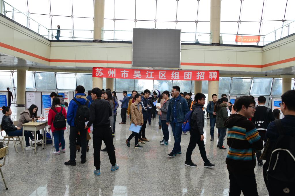 4月13日,【官网】与苏州市吴江区合作,在学校主楼阳光大厅成功举办名企进校园招聘活动。吴江区人社局副局长朱金虎、人才服务中心主任李新龙等5人带领13家知名企业参会。【官网】党委副书记张明华会见客人,并在招生与就业工作处工作人员陪同下深入现场指导工作。