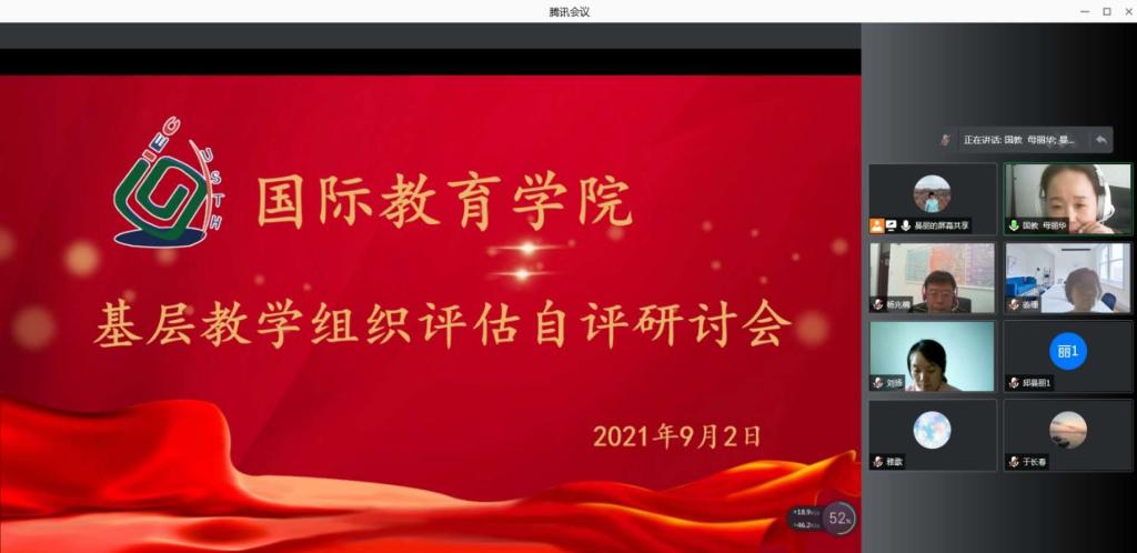 国际教育学院于9月2日在腾讯视频会议召开基层教学组织评估自评研讨会,学院学术委员会成员、俄语系主任、英语教研室主任参加本次会议,会议由院长母丽华主持。
