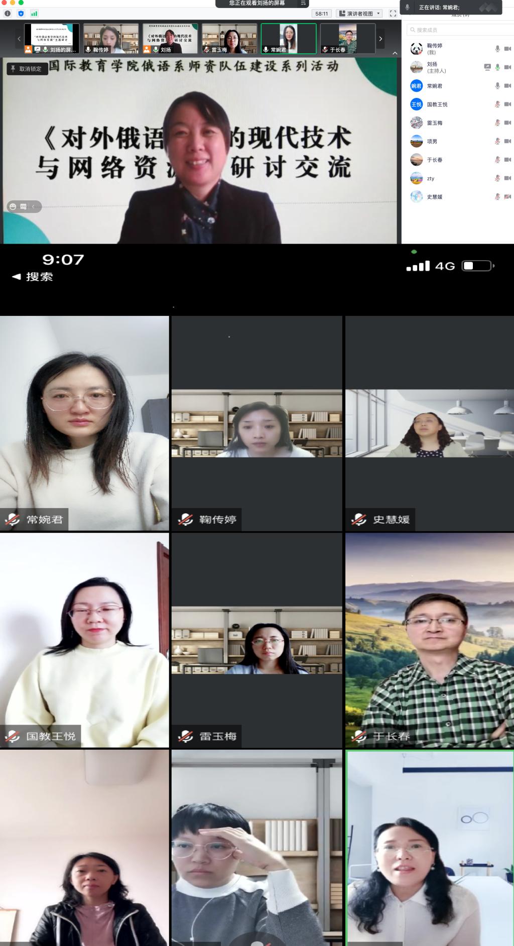会后,俄语系全体教师通过腾讯会议就此次参会收获展开了热烈地研讨,研讨会由俄语系主任刘扬老师主持,每名与会教师均分享了参会心得。