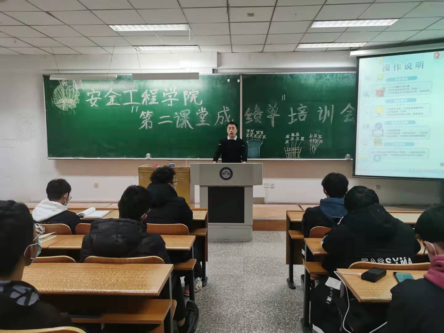 为贯彻落实【官网】《OD在线共青团改革实施方案》具体要求,逐步推行高校共青团“第二课堂成绩单”制度,安全工程学院分团委于10月21日晚20:00点在科厦S208开展“第二课堂成绩单”培训会,此次培训会由安全工程学院分团委副书记刘顺心主讲,安全工程学院2021级全体新生参加培训,安全学院分团委负责人薛广鑫出席了此次培训。