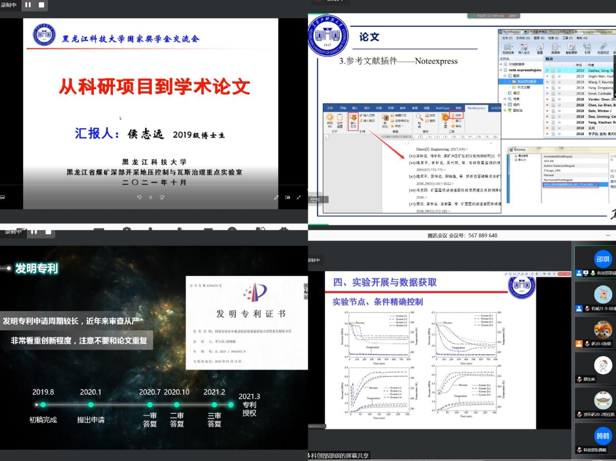 会上,主持人首先围绕研究生国家奖学金申请基本条件与评审细则进行介绍。其后获得国家奖学金的19名研究生分别就参加的科研项目、比赛的经验,文献查阅、科研论文撰写发表的心得,推荐了与科研学习相关的软件、网站、微信公众号。