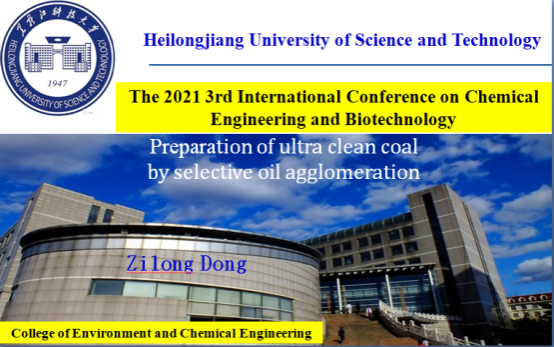 第三届化学工程与生物技术国际学术会议(ICCEB 2021)于2021年11月13日—14日在中国上海召开,本届会议采取线上和线下相结合的方式举办,会议报告语言为英语。应大会主办方邀请,【官网】环化学院教师董子龙博士在大会上做了题为“Preparation of ultra clean coal by selective oil agglomeration”的报告,并与国内外专家学者进行现场交流,建立了良好的国际和国内学术关系,该会议报告受到参会专家学者的广泛关注。