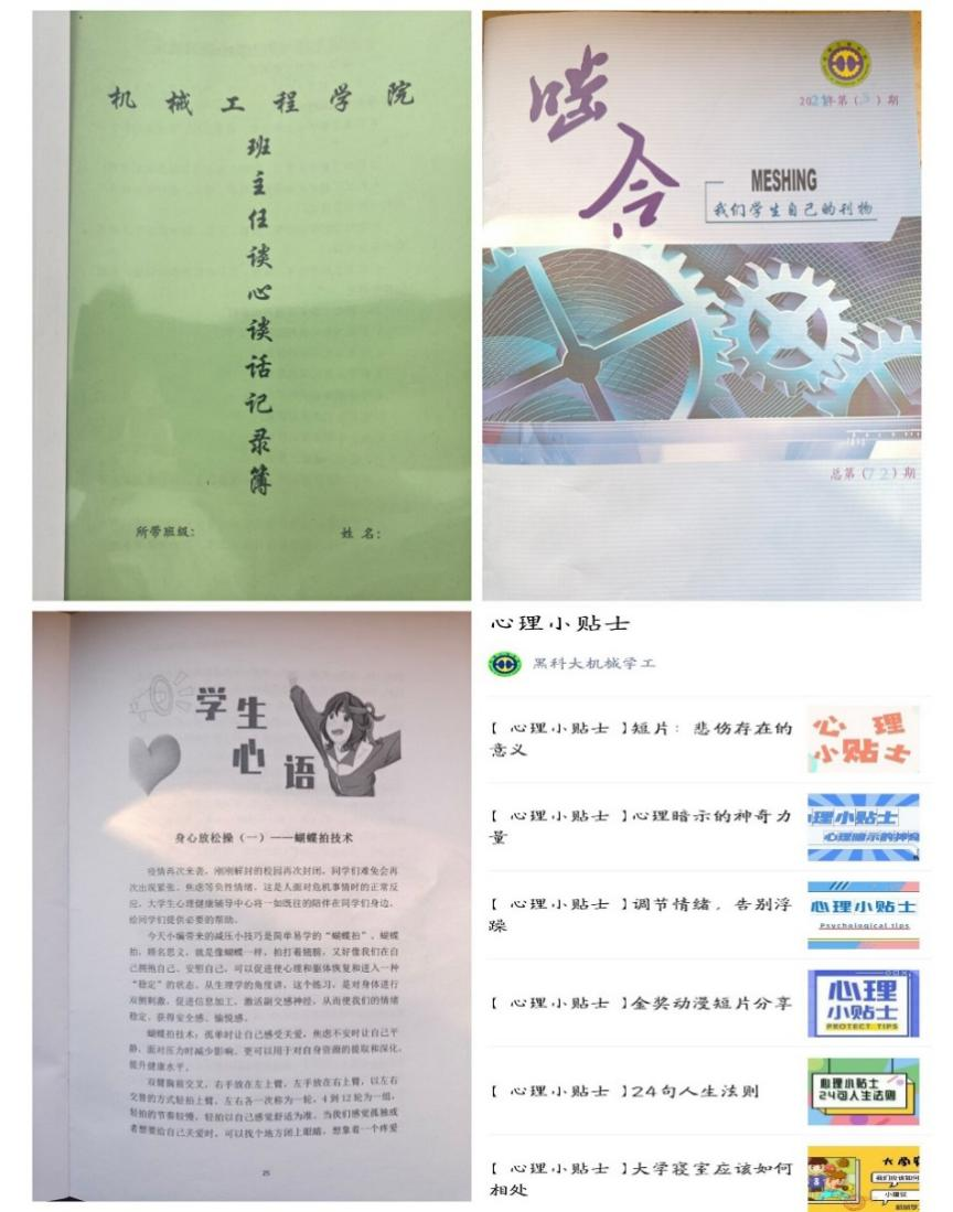 用心“推”,打造学院心理健康特色亮点。学院通过“黑OD在线机械学工”微信公众号,每周向全院学生推送一篇“心理小贴士”,普及心理健康知识,传授情绪调节技巧;依托学院《啮合》刊物,打造“心海泛舟”专栏,传授心理调节方法、培养心理健康品质、服务心理健康教育,将传授的心理健康知识荟萃成营养丰富、“色香味”俱全的“心灵鸡汤”。