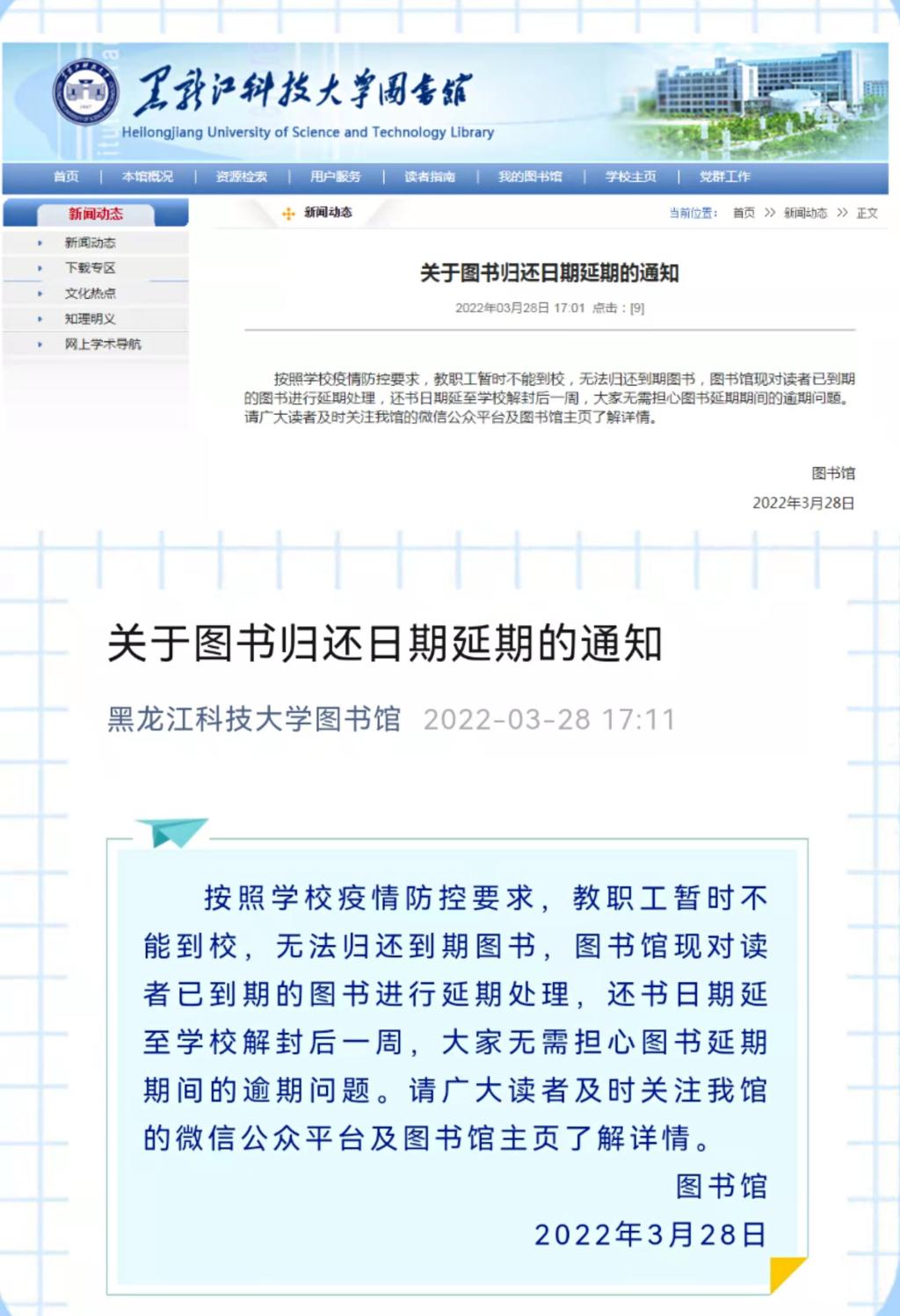 图书馆还就疫情期间教师读者的“到期、超期”图书做出及时调整,将所有在借图书的应还日期进行了合理顺延,并在图书馆主页和微信公众号中及时发布推文告知,解除了教师读者不能按时还书的后顾之忧。