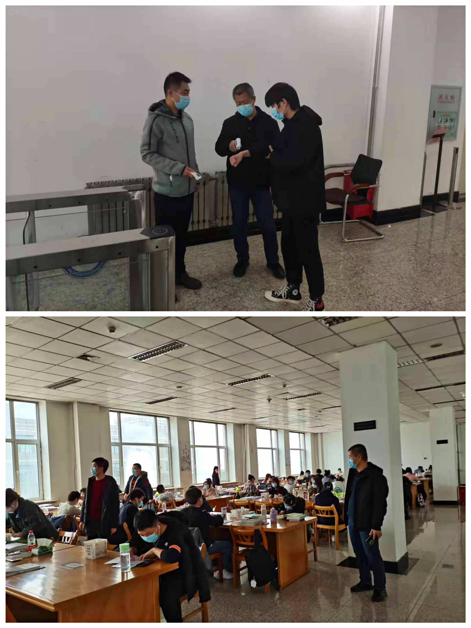 加强图书馆入口管控,引导学生按疫情防控要求入馆学习,养成刷一卡通、扫码、测温、全程佩戴口罩的习惯。坚持每天对全馆各楼层巡查至少一次,引导学生隔位就做,进一步织牢织密图书馆疫情防控防线。