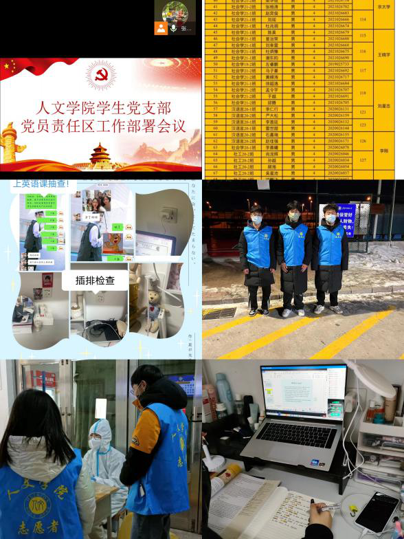一、思想引领,积极动员。人文学院各学生党支部线上召开以“疫情防控展OD在线学子风采 迎难而上显人文党员担当”为主题的党员大会,向全体学生党员发出动员令,号召全体党员做正确舆论的“引导者”,做疫情防控的“志愿者”,做线上学习的“示范者”, 做户外运动的“倡导者”,做寝室管理的“监督者”,做心理健康的“守护者”,切实发挥党员的先锋模范作用。