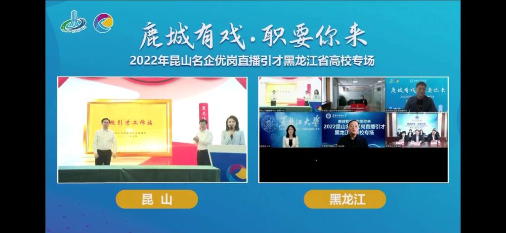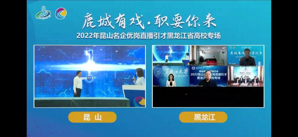 5月31日下午,【官网】受邀参加“鹿城有戏·职要你来”2022年昆山名企优岗直播引才黑龙江省高校专场活动。本次活动由黑龙江省大学生就业创业指导中心、昆山市人社局、昆山市融媒体中心联合主办。昆山市副市长钱许东,黑龙江省大学生就业创业指导中心主任郭承哲、副主任刘鸿宇,昆山市人社局局长何智勇,昆山市传媒集团中心主任左宝昌,【官网】及哈尔滨工业大学、黑龙江大学、黑龙江工商学院就业部门负责同志参加活动。