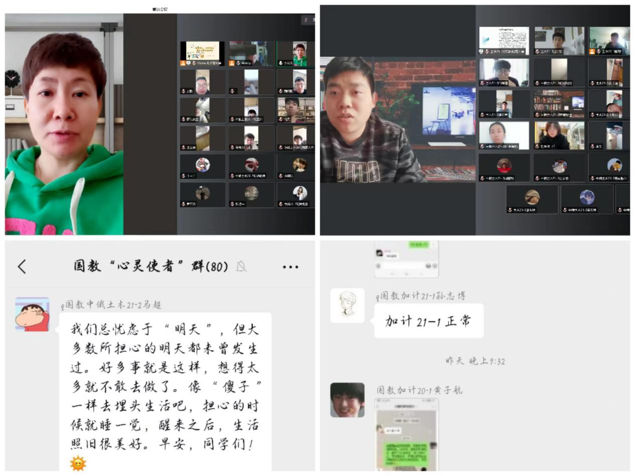 通过开展“心的力量”清晨一语活动,激励同学们从早上起就用一颗积极的心迎接新的一天,传递青春正能量,加强朋辈辅导,让学生更加细致的观察生活,感受生命的意义,从而完善大学生四级心理危机干预机制,推动新时代大学生心理健康服务工作深入发展;开展“致敬生命、疫路有你”线上主题班会,班主任和辅导员老师通过经典案例解析、线上团体辅导、主题发言、集体讨论和普及心理求助方式等多种形式积极引导学生关注心理健康,将知识性、趣味性、实效性融于一体,内容贴近学生生活,过程关注学生感受,效果引发学生共鸣,将朋辈辅导的作用发挥到最大化,从而更深层的了解学生,畅通危机排查途径。
