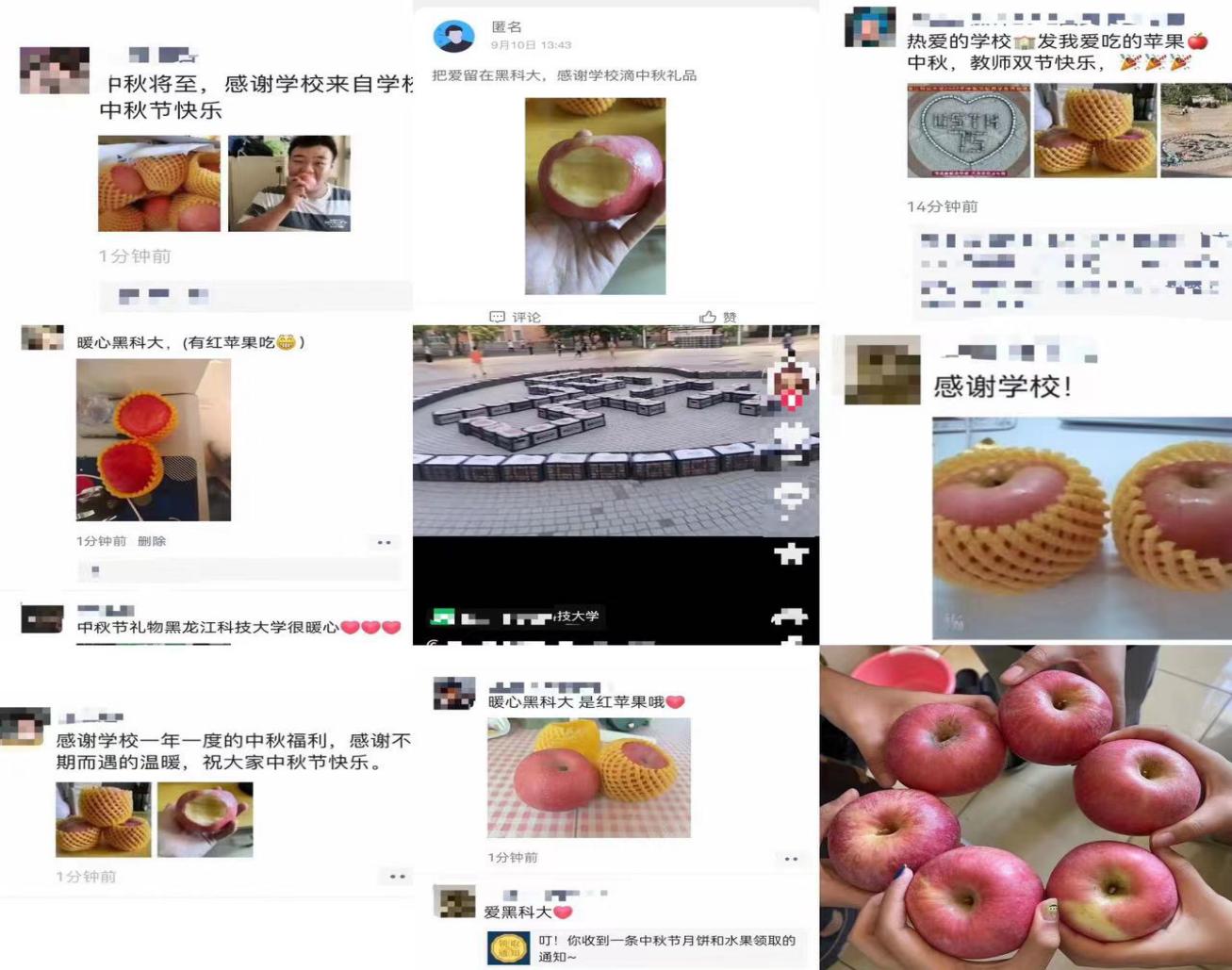 为了给广大青年学生呈献最暖心的中秋祝福,促使来自全国各地思念家乡的莘莘学子切实感受到学院大家庭的温暖,学校为每一位学生送上了承载着团圆美满、平安健康美好寓意的月饼和苹果,营造了和谐温暖的节日氛围。一份份苹果与月饼代表着对学生真挚的美好祝愿,承载着对学生的关爱与呵护,进一步增强了学生们的归属感和幸福感。学生在收到“中秋爱心”后纷纷通过朋友圈、OD在线圈、抖音等平台表达对学校的感激。
