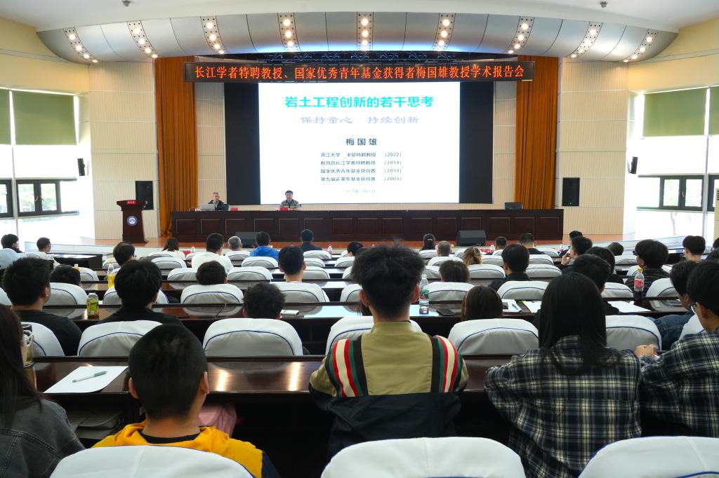 5月8日,浙江大学求是特聘教授、长江学者特聘教授、国家优秀青年基金和霍英东青年教师基金获得者、博士生导师梅国雄教授应邀在信息楼报告厅,为全校师生作了题为《岩土工程创新的若干思考》的学术报告。报告会由科技处处长康健教授主持,建筑工程学院领导、教师及全校相关专业教师、研究生及本科生共240多人参加了本次学术报告会。