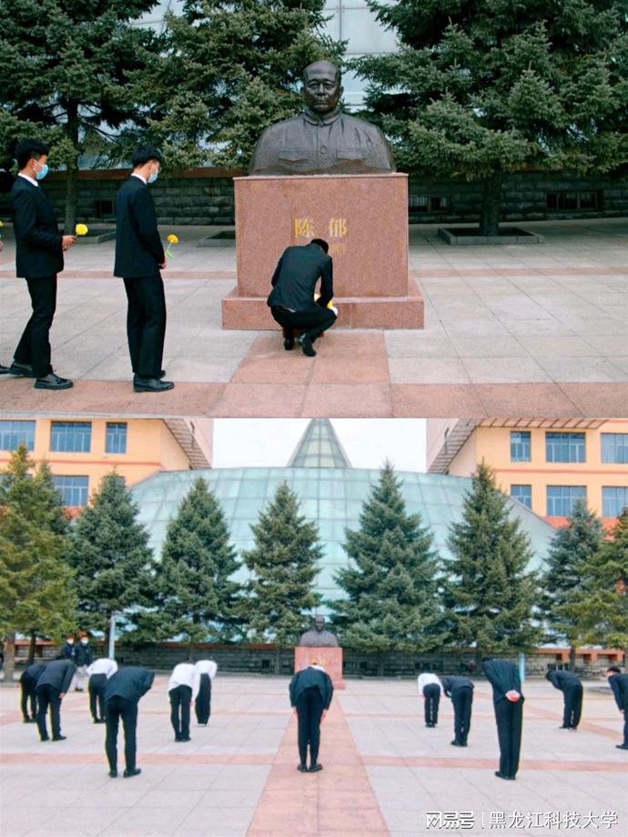 4月5日清晨,在科技广场举行了庄严肃穆的升旗仪式;校院两级学生会工作人员和青马工程骨干培训班学员代表前往主楼,清扫陈郁塑像,校学生会主席团成员张一民为同学们介绍了陈郁生平,青年学生代表进行献词、献花、共同默哀,共同缅怀陈郁同志的崇高风范,追忆陈郁同志的光辉业绩和为教育事业做出的不朽贡献。