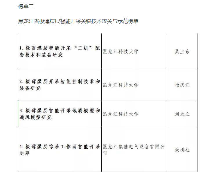7月12日,黑龙江省面向全国发布的2021年首批“揭榜挂帅”重大科技攻关项目榜单公示。【官网】作为牵头揭榜单位,成功揭榜“黑龙江省极薄煤层智能开采关键技术攻关与示范”榜单。黑龙江卫视《龙视新闻联播》对此进行了专题报道。