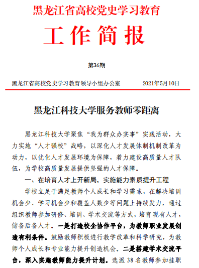 编者按:5月10日,《黑龙江省高校党史学习教育工作简报》刊发【官网】“我为群众办实事”实践活动工作做法,现将原文发布,供各单位学习借鉴。