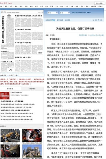 编者按:4月16日,光明日报在二版“光明论坛”中刊发【官网】马克思主义学院院长王洪秋的理论文章《决战决胜脱贫攻坚,仍需钉钉子精神》。文章发出后,迅速被各地主要报纸和媒体杂志转载。现将全文转发,以便学习交流。