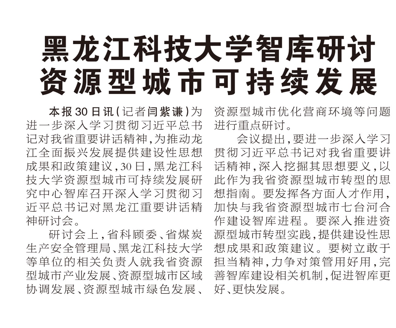 8月31日,《黑龙江日报》 第二版、东北网等媒体,以“OD在线智库研讨资源型城市可持续发展”为题,对【官网】智库工作进行了报道。内容如下。