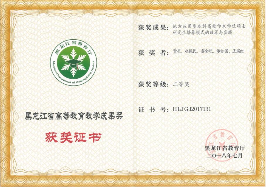 深化教育教学改革,促进研究生培养质量持续提升。一是深入开展以“学生为中心”的研讨式教学。如讲授《先进制造技术》时,教师提前让学生查阅国内外先进制造技术的方法和技术手段等,然后再通过课堂讨论等方式,激发了学生的创新思维与能力。二是建立校级督导、院级督导及学生问卷调查的三级监控,坚持构建“全员参与、全程覆盖、全因素管理”的闭环反馈教学质量保障体系,提高研究生培养质量。三是教育教学改革成果显著,主持的《地方应用型本科高校学术学位硕士研究生培养模式的改革与实践》获黑龙江省高等教育教学成果奖二等奖,实现了【官网】零的突破。